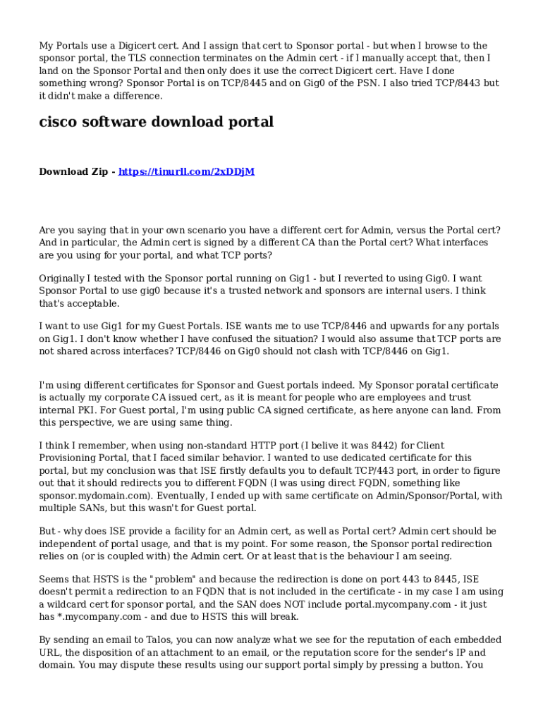 My Portals use a Digicert cert. And I assign that cert to Sponsor portal but when I browse to the sponsor portal, the TLS connection terminates on the Admin cert if I manually accept that, then I