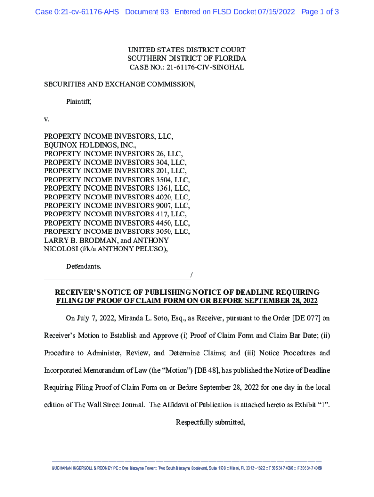 Case 0:21cv61176AHS Document 93 Entered on FLSD Docket 07/15/2022 Page 1 of 3UNITED STATES DISTRICT COURT SOUTHERN DISTRICT OF FLORIDA CASE NO.: 2161176CIVSINGHAL SECURITIES AND EXCHANGE COMMISSION,