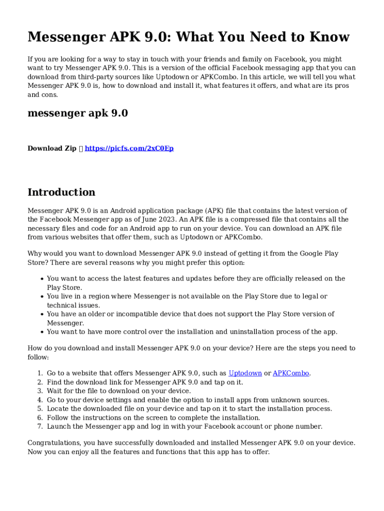 Messenger APK 9.0: What You Need to Know If you are looking for a way to stay in touch with your friends and family on Facebook, you might want to try Messenger APK 9.0. This is a version of the official