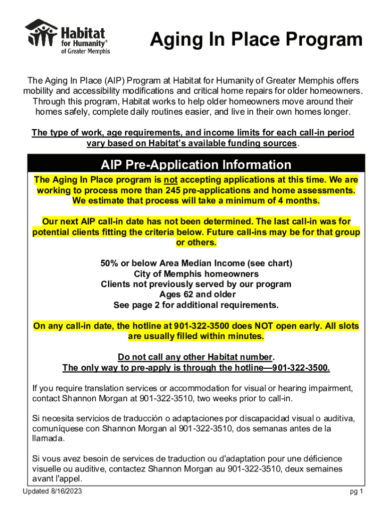 The Aging In Place (AIP) Program at Habitat for Humanity of Greater Memphis offers