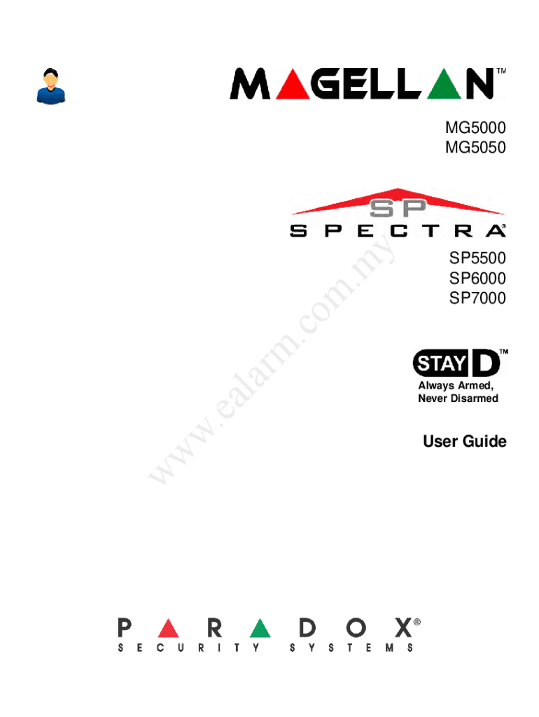 SP5500 SP6000 SP7000www.eala rm .com.myMG5000 MG5050Always Armed, Never DisarmedUser GuideWarranty For complete warranty information on this product please refer to the Limited Warranty Statement