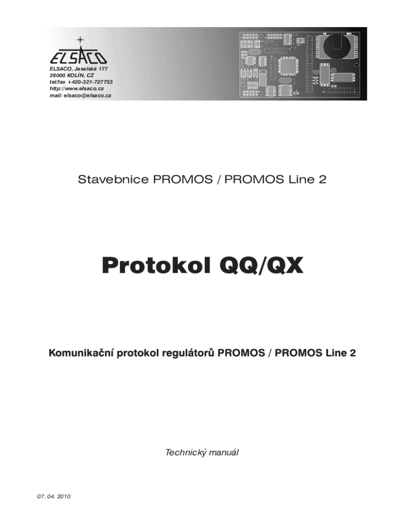 mail: elsaco@elsaco.czStavebnice PROMOS / PROMOS Line 2Protokol QQ/QXTechnick manul07. 04. 2010 2010 sdruen ELSACO