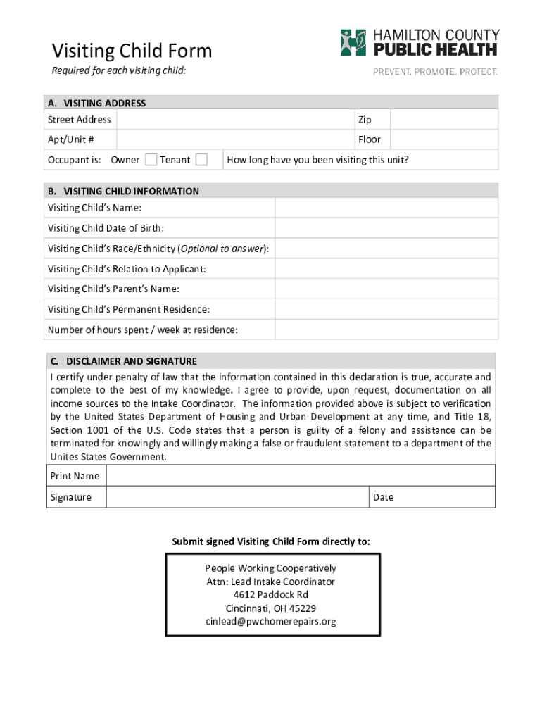 Get the free Visiting Child Form