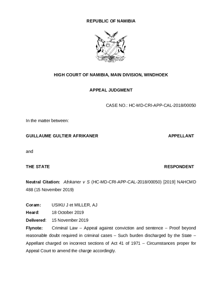Template Neutral Citation:Afrikaner v S (HC-MD-CRI-APP-CAL-2018/00050) 2019 NAHCMD 488 (15 November 2019) instructions