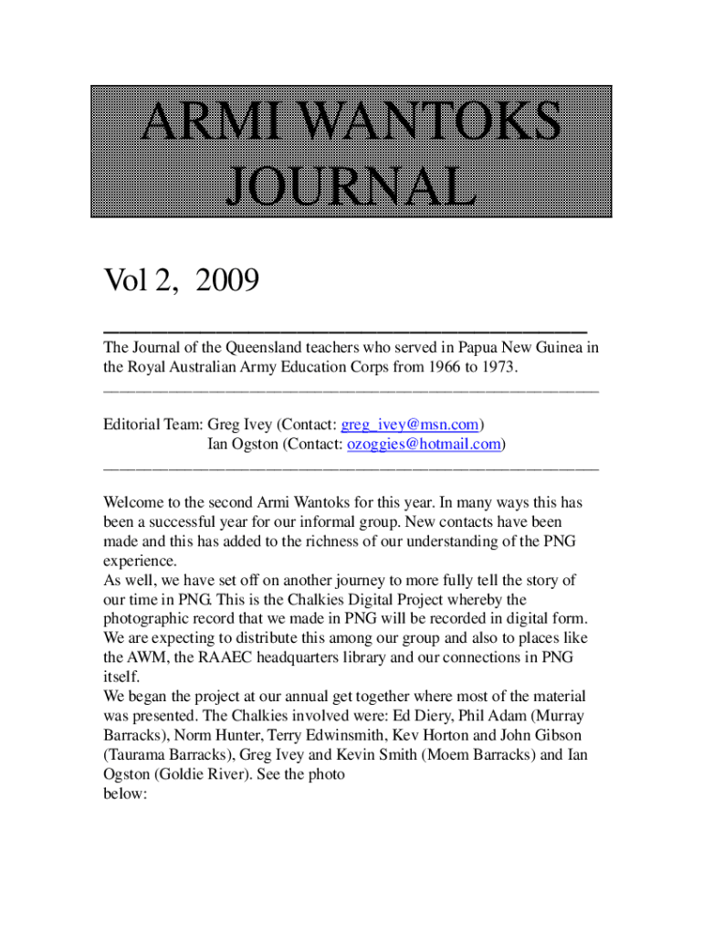 The Journal of the Queensland teachers who served in Papua New Guinea in