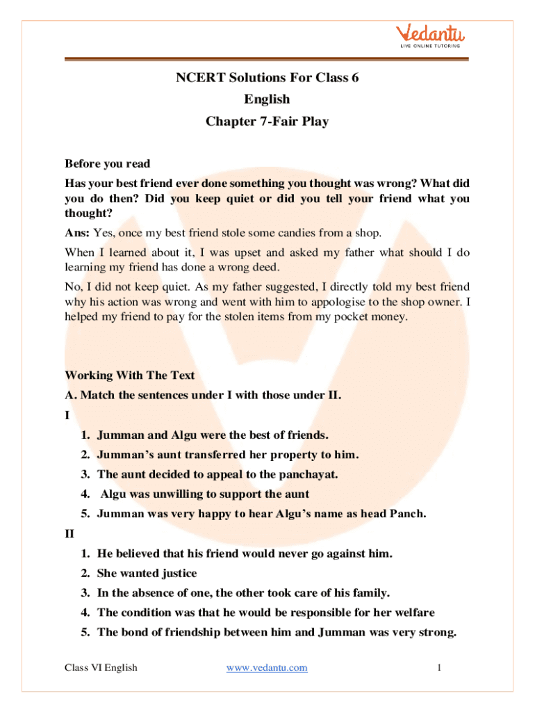NCERT Solutions For Class 6 English Chapter 7Fair Play Before you read Has your best friend ever done something you thought was wrong? What did you do then? Did you keep quiet or did you tell your