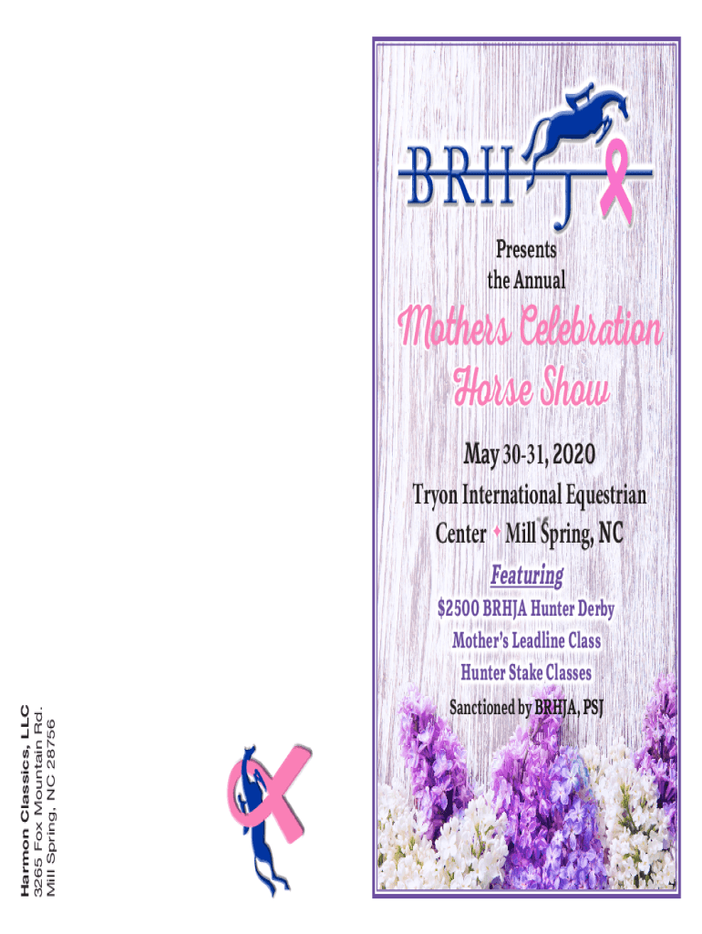 Presents the AnnualMothers Celebration Horse Show May 3031, 2020 Tryon International Equestrian Center Mill Spring, NC FeaturingHarmon Classics, LLC 3265 Fox Mountain Rd. Mill Spring, NC 28756$2500