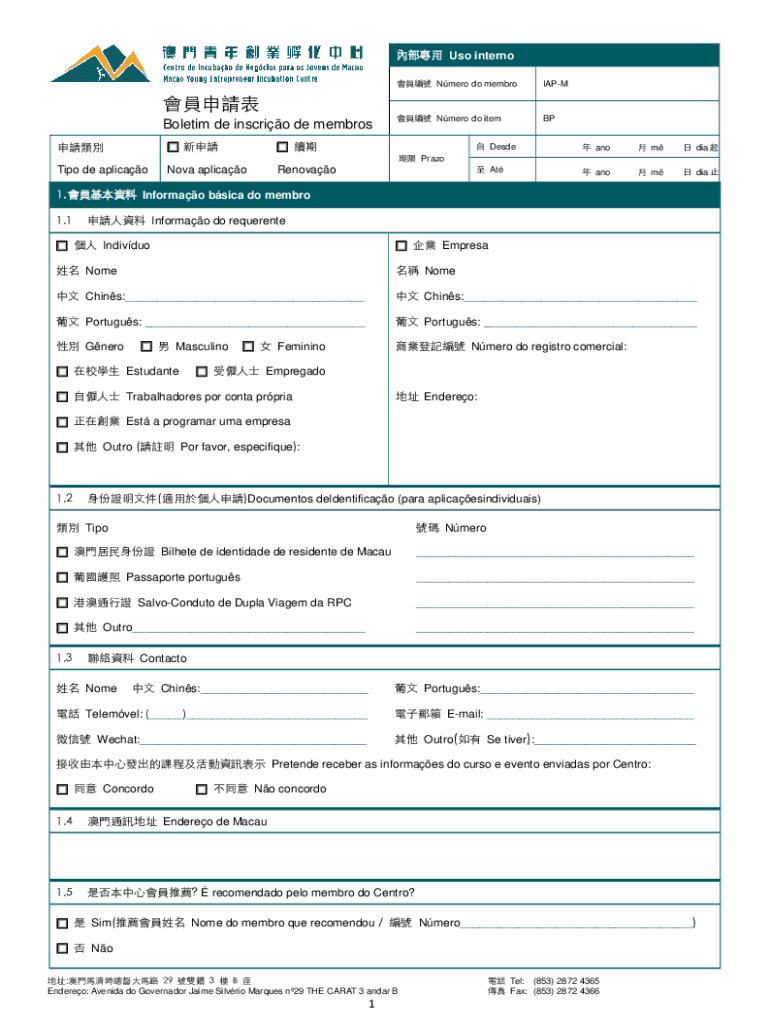 Tipo de aplicaoNova aplicaoRenovao Nmero do membroIAPM Nmero do itemBP Prazo Desde ano m dia At ano m dia 1. Informao bsica do membro