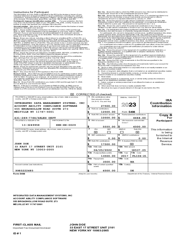 Instructions for ParticipantBox 12a. Shows the date by which the RMD amount in box 12b must be distributed to avoid the 50% excise tax on the undistributed amount for 2024. Box 12b. Shows the amount