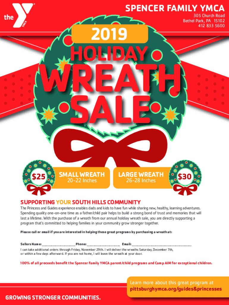 SPENCER FAMILY YMCA305 Church Road Bethel Park, PA 15102 412 833 56002019HOLIDAYWREATH SALE $25SMALL WREATH 2022 InchesLARGE WREATH 2628 Inches$30SUPPORTING YOUR SOUTH HILLS COMMUNITYThe Princess