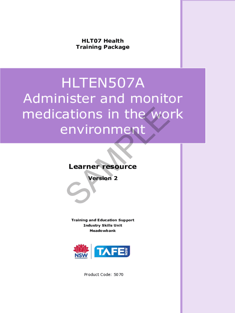 Get the free HLTEN507C - Administer and monitor medications in the ...