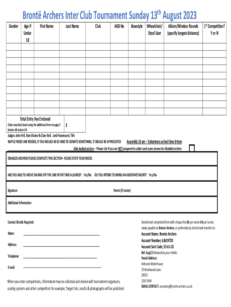 Get the free Bront Archers Inter Club Tournament Sunday 13th August 2023