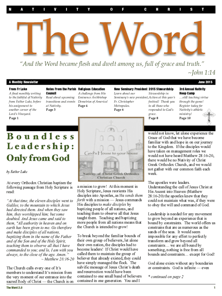 NATIVITYOFCHRISTThe WordAnd the Word became flesh and dwelt among us, full of grace and truth. John 1:14A Monthly NewsletterFrom Fr Luke A final monthly writing to the faithful of Nativity from Father