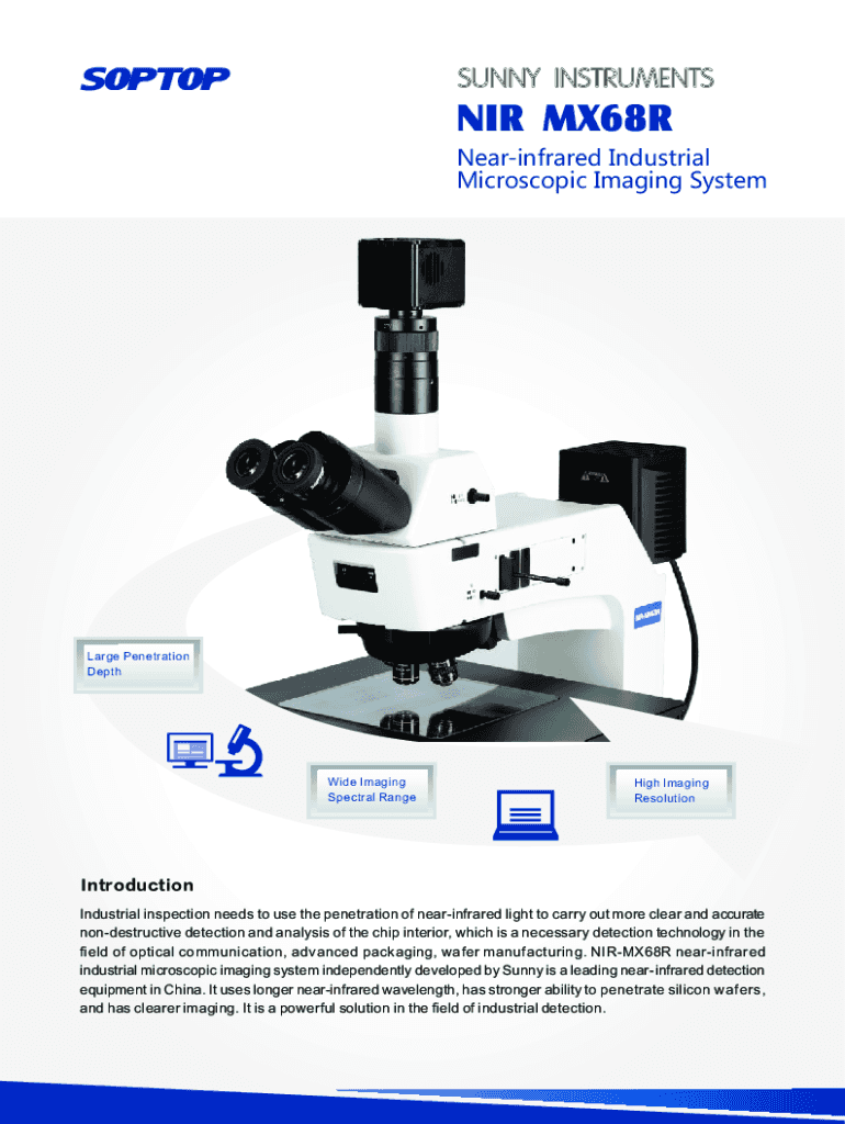 SUNNY INSTRUMENTSNearinfrared Industrial Microscopic Imaging SystemLarge Penetration DepthWide Imaging Spectral RangeHigh Imaging ResolutionIntroduction Industrial inspection needs to use the penetration