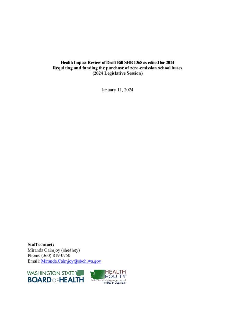 Health Impact Review of Draft Bill SHE 1368 as edited for 2024
