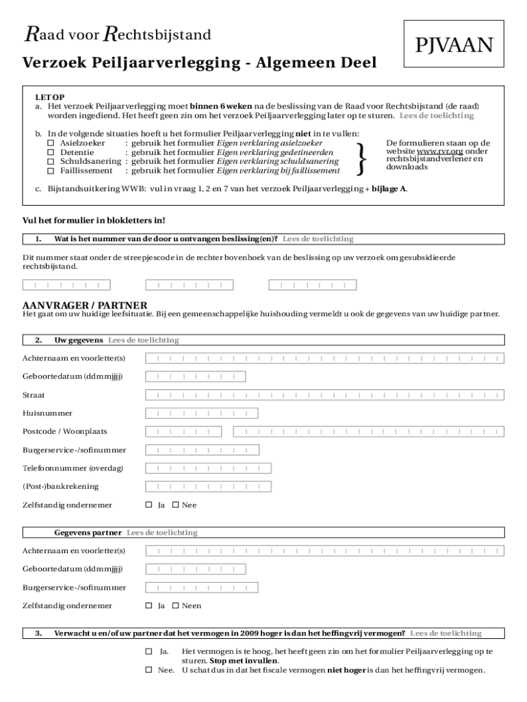 R aad voor R echtsbijstandPJVAANAm s t e rd a mVerzoek Peiljaarverlegging Algemeen DeelLET OP a.Het verzoek Peiljaarverlegging moet binnen 6 weken na de beslissing van de Raad voor Rechtsbijstand