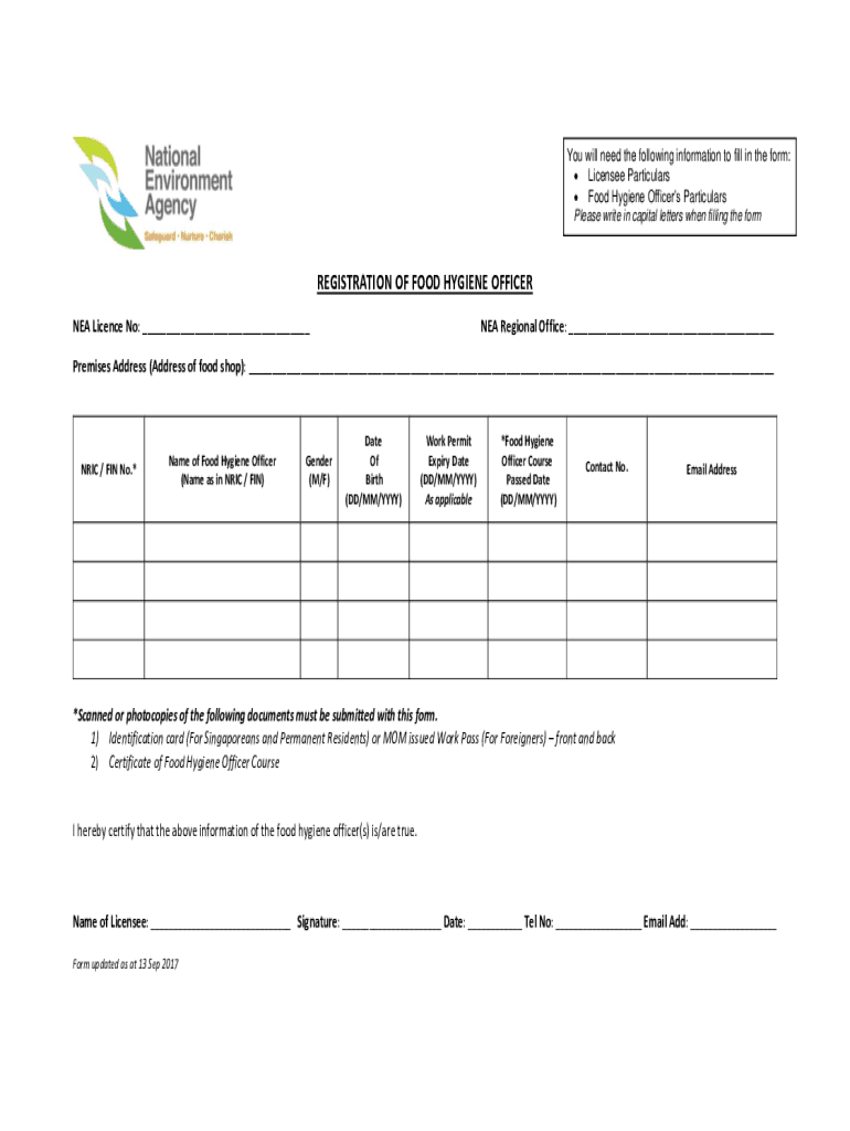 Food Hygiene Officers Particulars