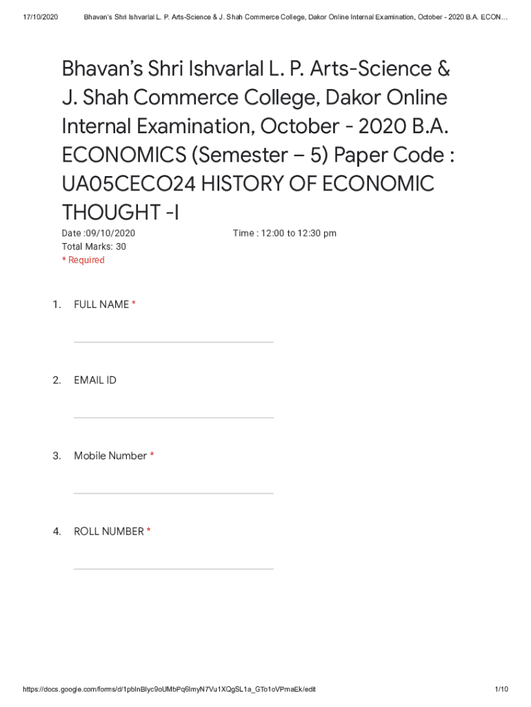 17/10/2020Bhavans Shri Ishvarlal L. P. ArtsScience & J. Shah Commerce College, Dakor Online Internal Examination, October 2020 B.A. ECONBhavans Shri Ishvarlal L. P. A sScience & J. Shah Commerce College,