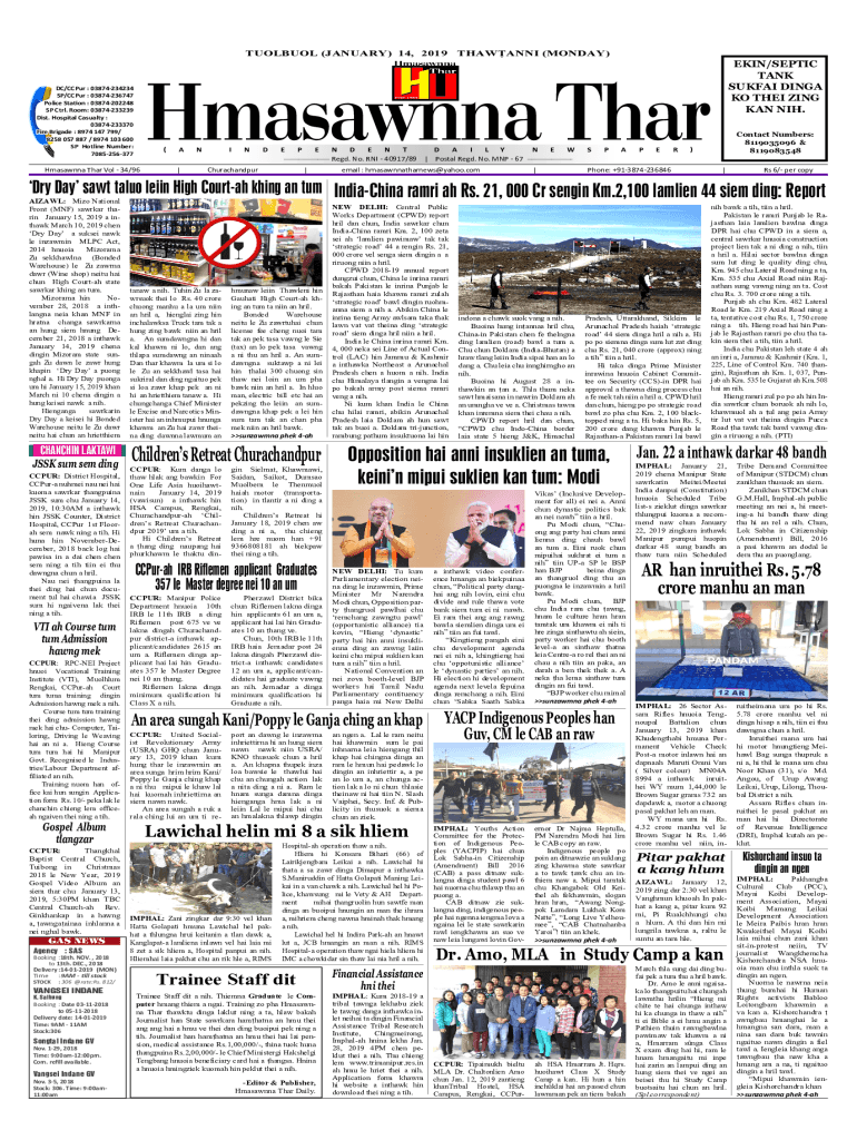 TUOLBUOL (JANUARY) 14, 2019EKIN/SEPTIC TANK SUKFAI DINGA KO THEI ZING KAN NIH.Hmasawnna TharDC/CCPur : 03874234234 SP/CCPur : 03874236747 Police Station : 03874202248 SP Ctrl. Room: 03874233239 Dist.
