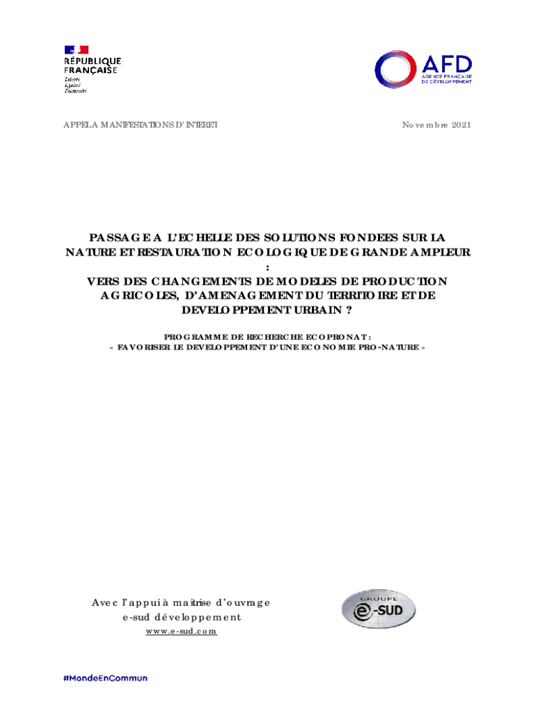 APPEL A MANIFESTATIONS DINTERETNovembre 2021PASSAGE A LECHELLE DES SOLUTIONS FONDEES SUR LA NATURE ET RESTAURATION ECOLOGIQUE DE GRANDE AMPLEUR : VERS DES CHANGEMENTS DE MODELES DE PRODUCTION AGRICOLES,