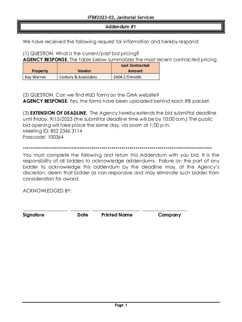 IF#202303, Janitorial ServicesAddendum #1