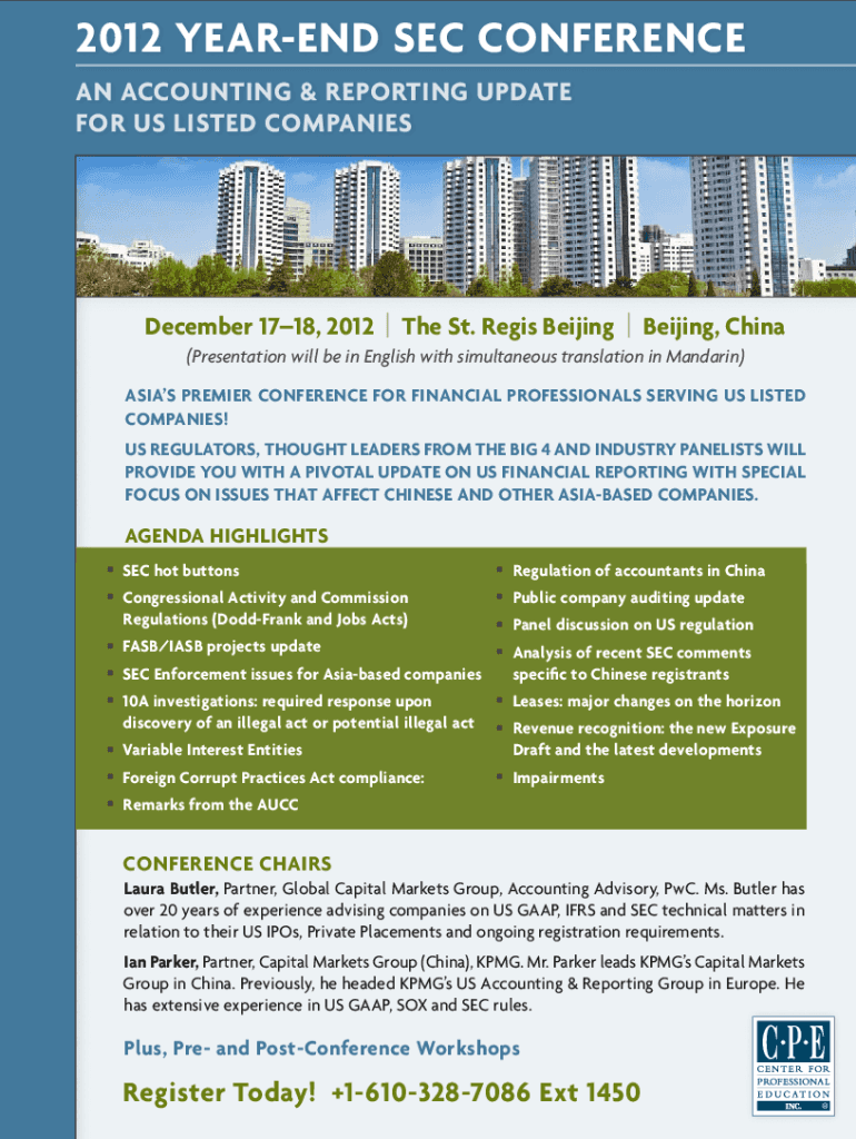 2012 YEAREND SEC CONFERENCE AN ACCOUNTING & REPORTING UPDATE FOR US LISTED COMPANIESDecember 1718, 2012 | The St. Regis Beijing | Beijing, China ( Presentation will be in English with simultaneous