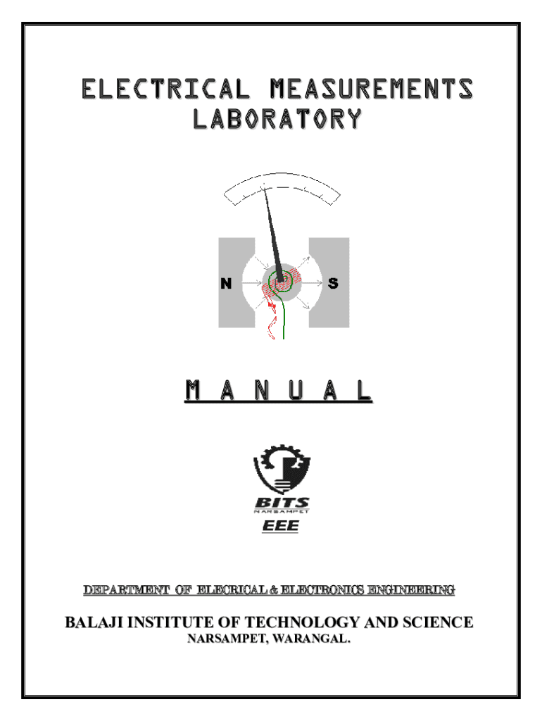 ELECTRICAL MEASUREMENTS LABORATORYM A N U A LDEPARTMENT OF ELECRICAL & ELECTRONICS ENGINEERINGBALAJI INSTITUTE OF TECHNOLOGY AND SCIENCE NARSAMPET, WARANGAL.Prepared byS. SRIDHARM.Tech(Power Electronics)Asst.