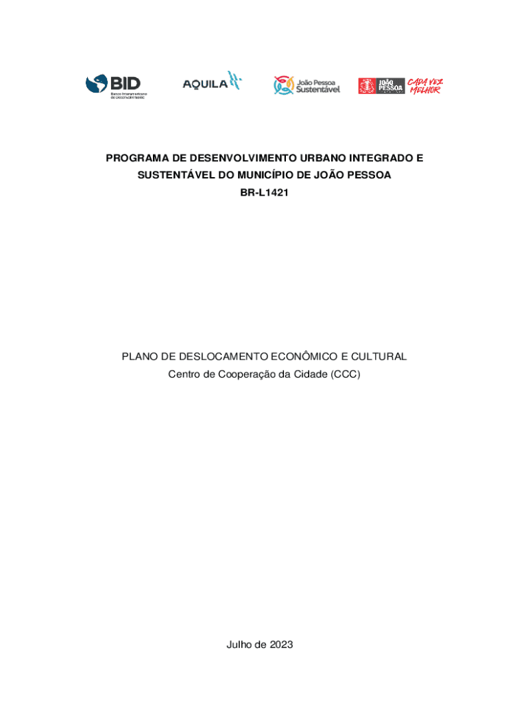 PROGRAMA DE DESENVOLVIMENTO URBANO INTEGRADO E SUSTENTVEL DO MUNICPIO DE JOO PESSOA BRL1421PLANO DE DESLOCAMENTO ECONMICO E CULTURAL Centro de Cooperao da Cidade (CCC)Julho de 2023ORGANISMO FINANCIADORBanco