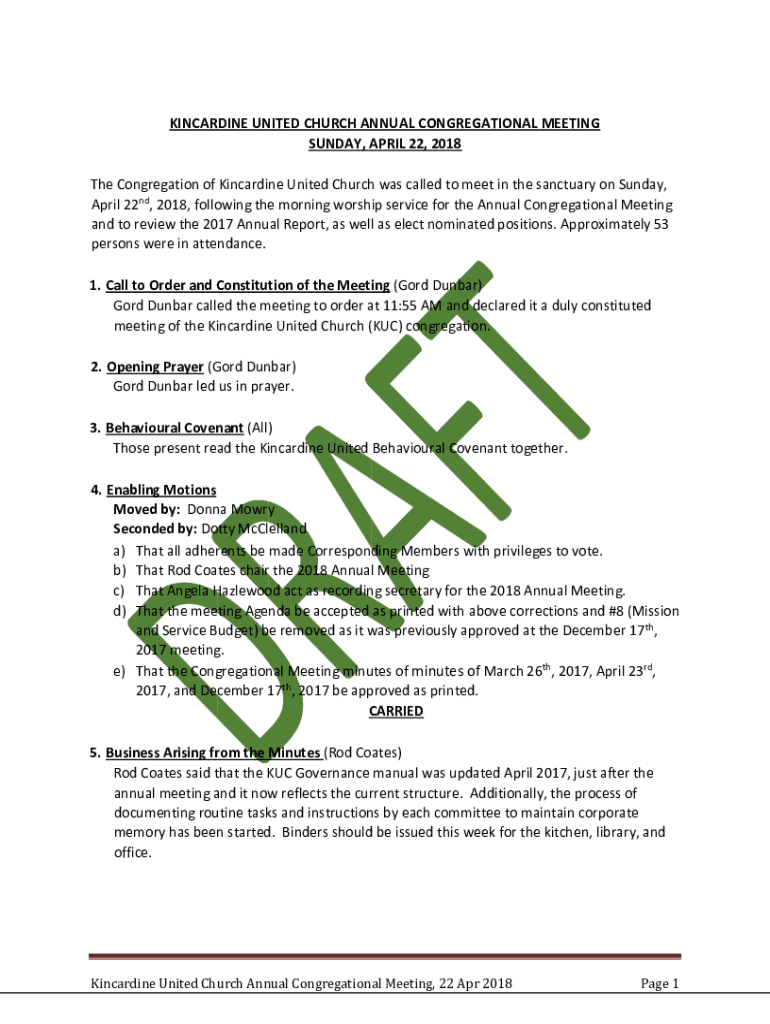 DISCARDING UNITED CHURCH ANNUAL CONGREGATIONAL MEETING