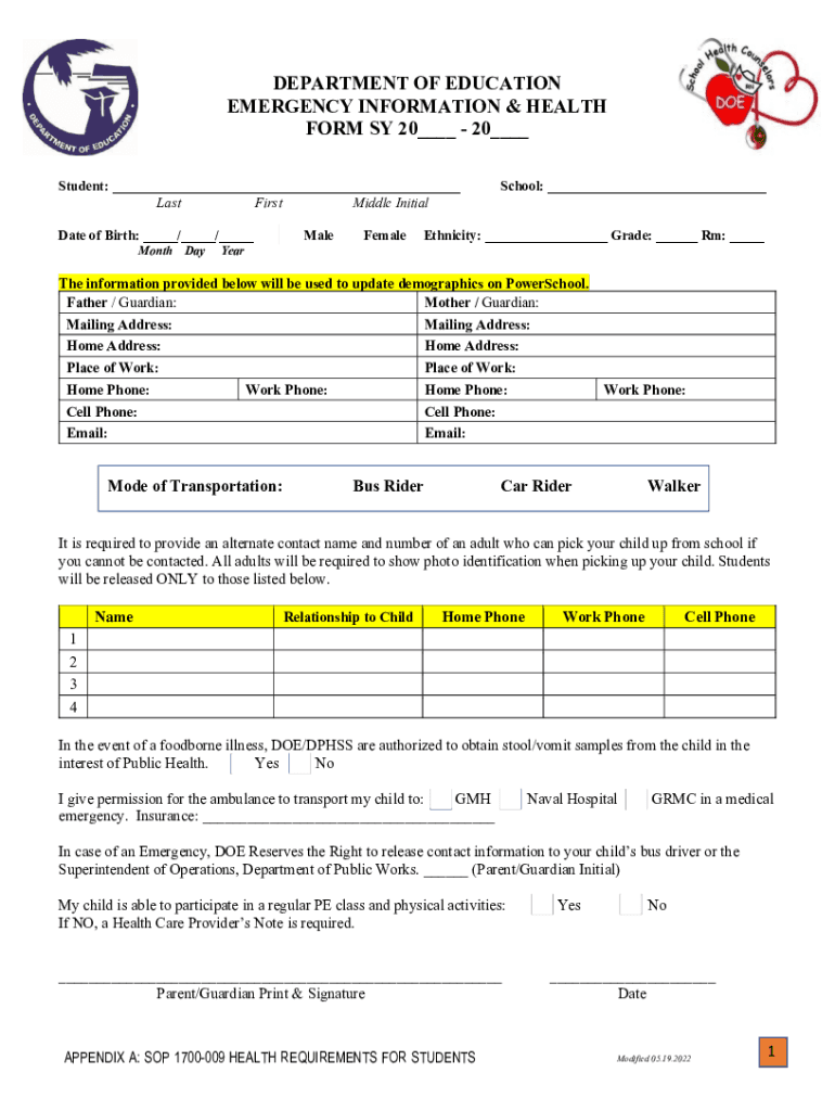 Get the free Emergency Information & Health Form SY 20 - ...