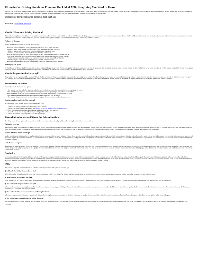 Ultimate Car Driving Simulator Premium Hack Mod APK: Everything You Need to Know If you are a fan of car driving simulator games, you might have heard of Ultimate Car Driving Simulator, one of the