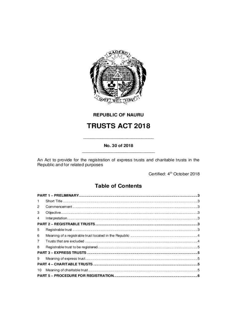 REPUBLIC OF NAURUTRUSTS ACT 2018