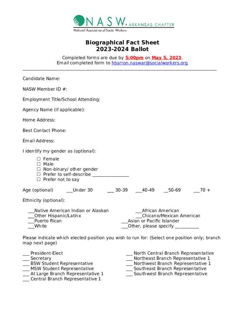 Instructions for the Biographical Fact Sheet form