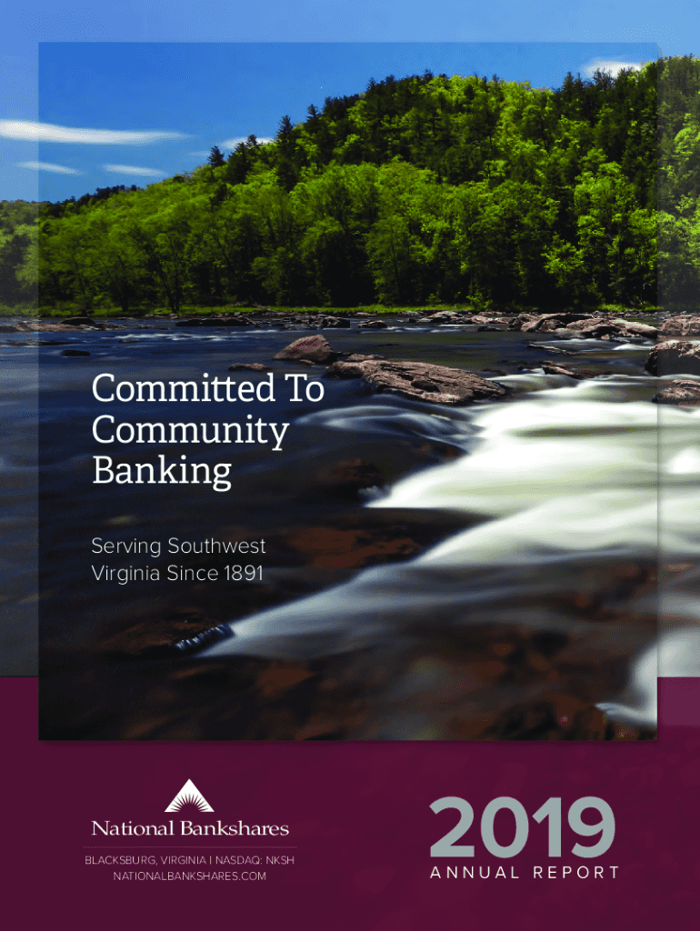 Committed To Community Banking Serving Southwest Virginia Since 1891National Bankshares BLACKSBURG, VIRGINIA | NASDAQ: NKSH NATIONALBANKSHARES.COM2019ANNUAL REPORTBanking Built on Values National