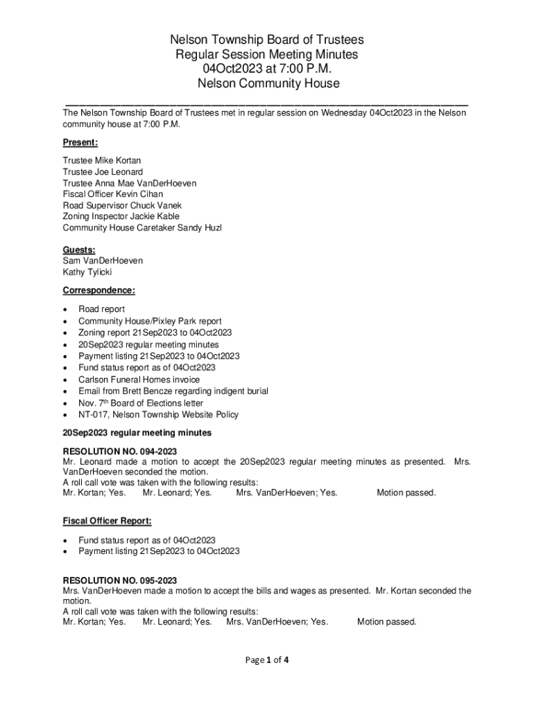 Get the free Nelson Township Board of Trustees Regular Session ...