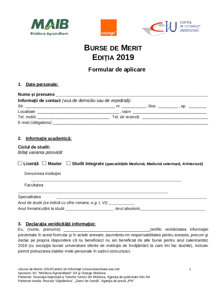 The Burse de Merit is a fillable form in MS Word extension needed to be submitted to the specific address to provide specific info. It must be filled-out and signed, which is possible in hard copy, or using a particular solution such as PDFfiller. This tool lets you complete any PDF or Word document right in the web, customize it depending on your needs and put a legally-binding e-signature. Right away after completion, user can send the Burse de Merit to the relevant person, or multiple ones via email or fax. The template is printable too due to PDFfiller feature and options proposed for printing out adjustment. Both in electronic and physical appearance, your form will have got clean and professional appearance. It's also possible to save it as the template for further use, there's no need to create a new document over and over. You need just to amend the ready template.