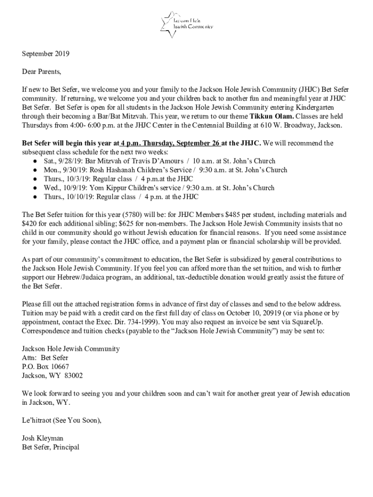 If new to Bet Refer, we welcome you and your family to the Jackson Hole Jewish Community (HOC) Bet Refer