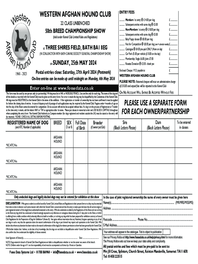 WWW.WAC.co.entry FEESWESTERN AFGHAN HOUND CLUB