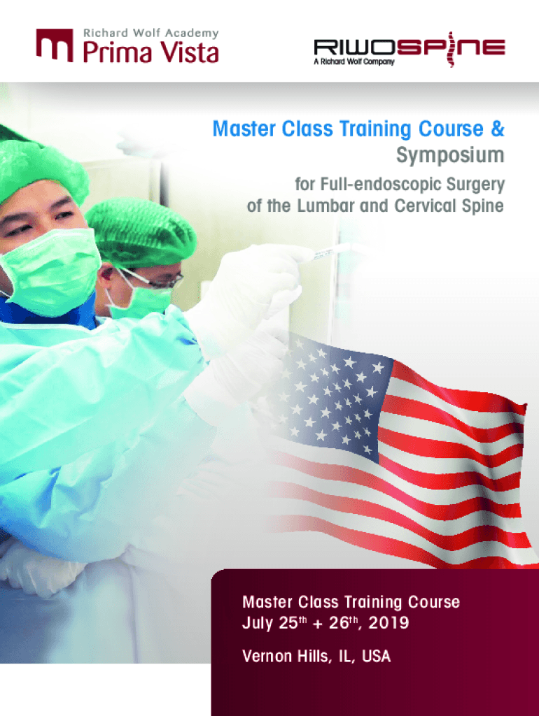 Master Class Training Course & Symposium for Fullendoscopic Surgery of the Lumbar and Cervical SpineMaster Class Training Course July 25th + 26th, 2019 Vernon Hills, IL, USAInvitationDear Colleagues,