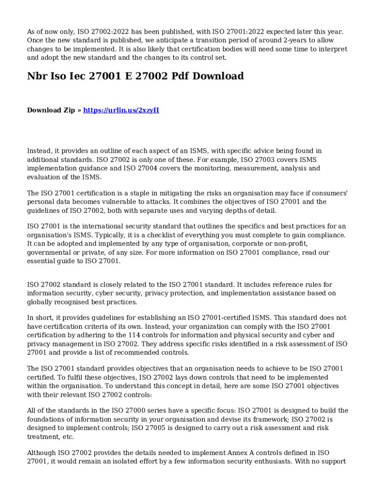 As of now only, ISO 27002:2022 has been published, with ISO 27001:2022 expected later this year. Once the new standard is published, we anticipate a transition period of around 2years to allow changes