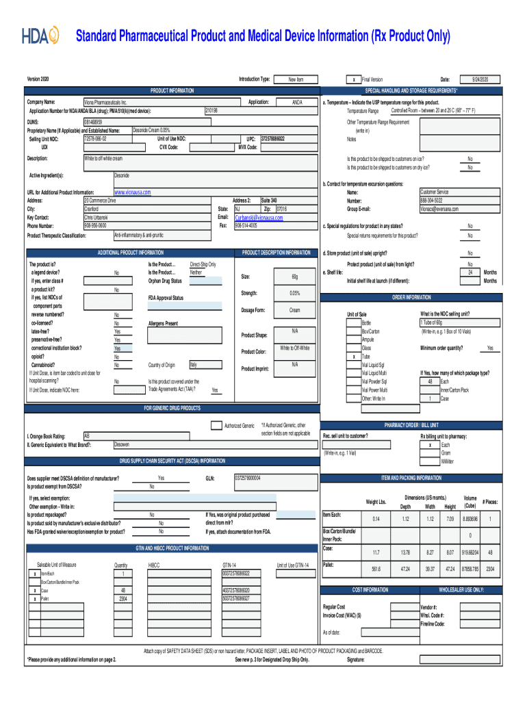 Standard Pharmaceutical Product and Medical Device Information (Rx Product Only) Version 2020Introduction Type:New ItemxPRODUCT INFORMATION Company Name: Viona Pharmaceuticals Inc. Application Number