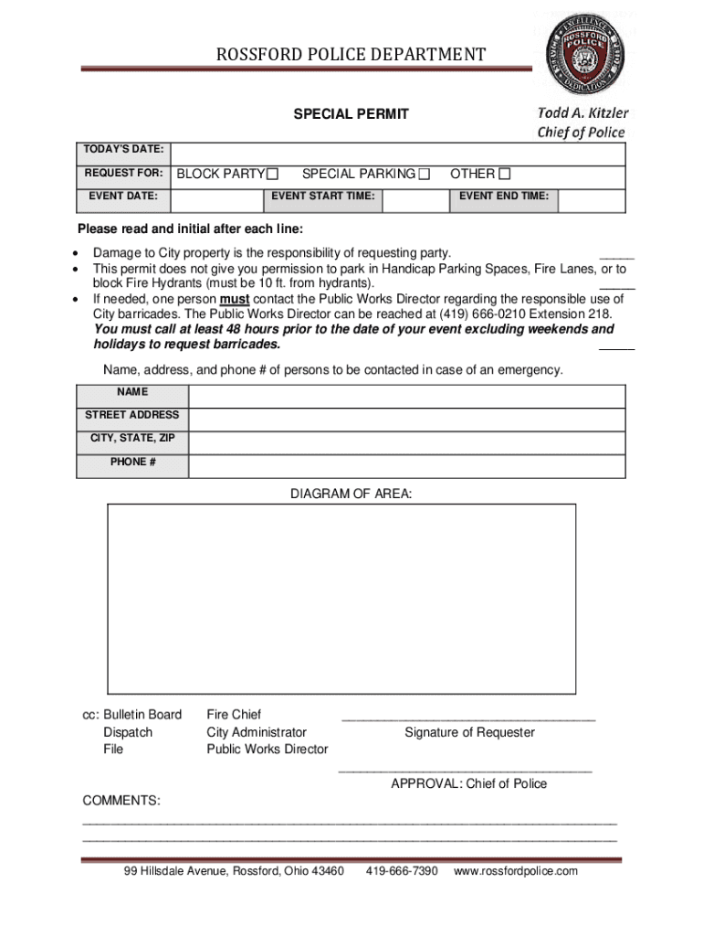 Get the free Special Permit - ROSSFORD POLICE DEPARTMENT