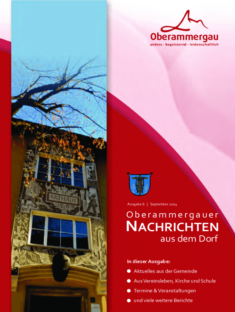 Oberammergau anders begeisternd leidenschaftlichAusgabe 6 | September 2014OberammergauerNACHRICHTEN aus dem DorfIn dieser Ausgabe: Aktuelles aus der Gemeinde Aus Vereinsleben, Kirche und Schule Termine