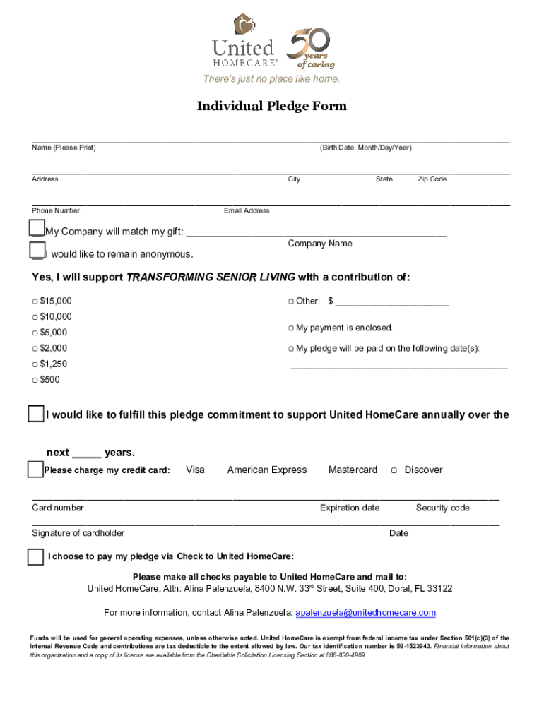 There\'s just no place like home.Individual Pledge Form ___ Name (Please Print)(Birth Date: Month/Day/Year)___ AddressCityStateZip Code___ Phone NumberEmail Address__ My Company will match my gift: