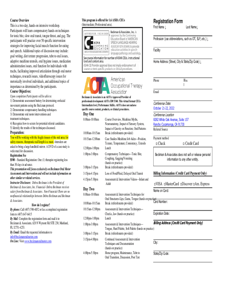 To fill out the Beckman Oral Motor Assessment, a professional should observe the individual during various tasks, note their performance on each item of the assessment, and document the scores and qualitative observations.