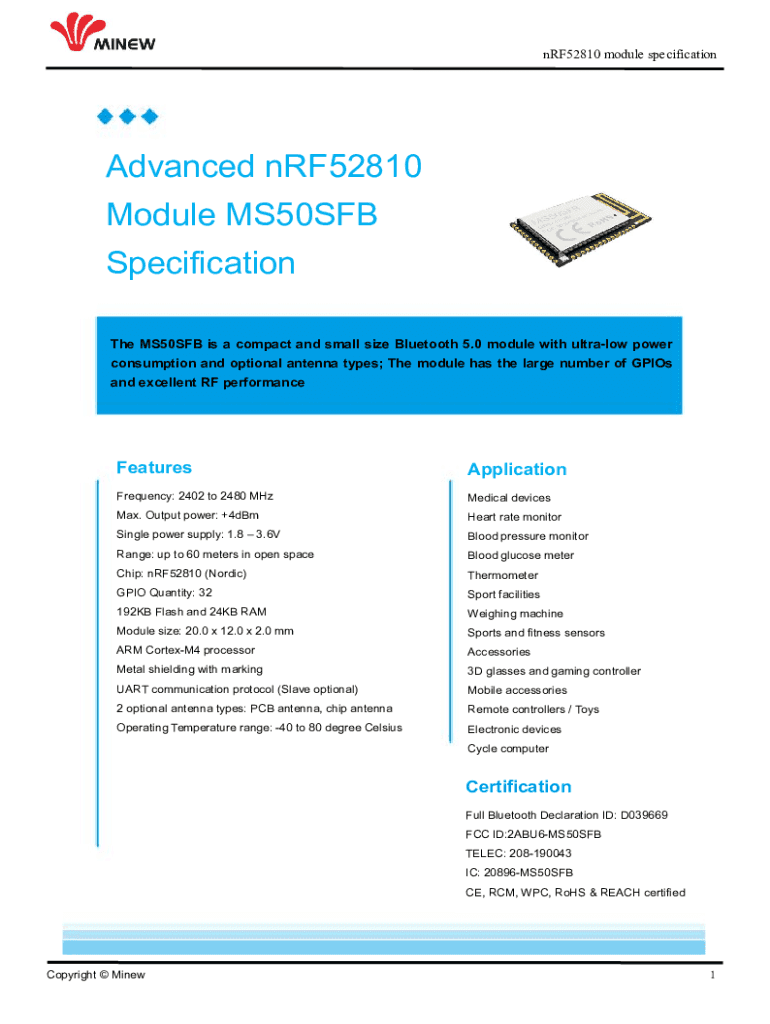 Fill out your nrf52832 24ghz transceiver wireless online with pdfFiller!