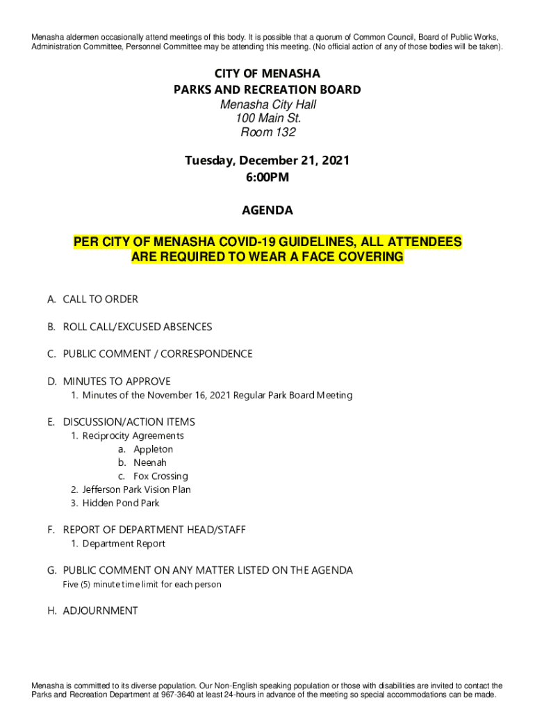 Menasha aldermen occasionally attend meetings of this body. It is possible that a quorum of Common Council, Board of Public Works, Administration Committee, Personnel Committee may be attending this