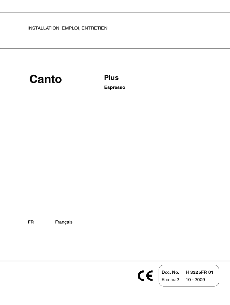 INSTALLATION, EMPLOI, ENTRETIENCantoPlus EspressoFRFranaisDOC. NO.H 3325FR 01EDITION 210 2009Targhetta di identificazione Identification labelValbrembo, 01/01/2012 DICHIARAZIONE DI CONFORMITA DECLARATION