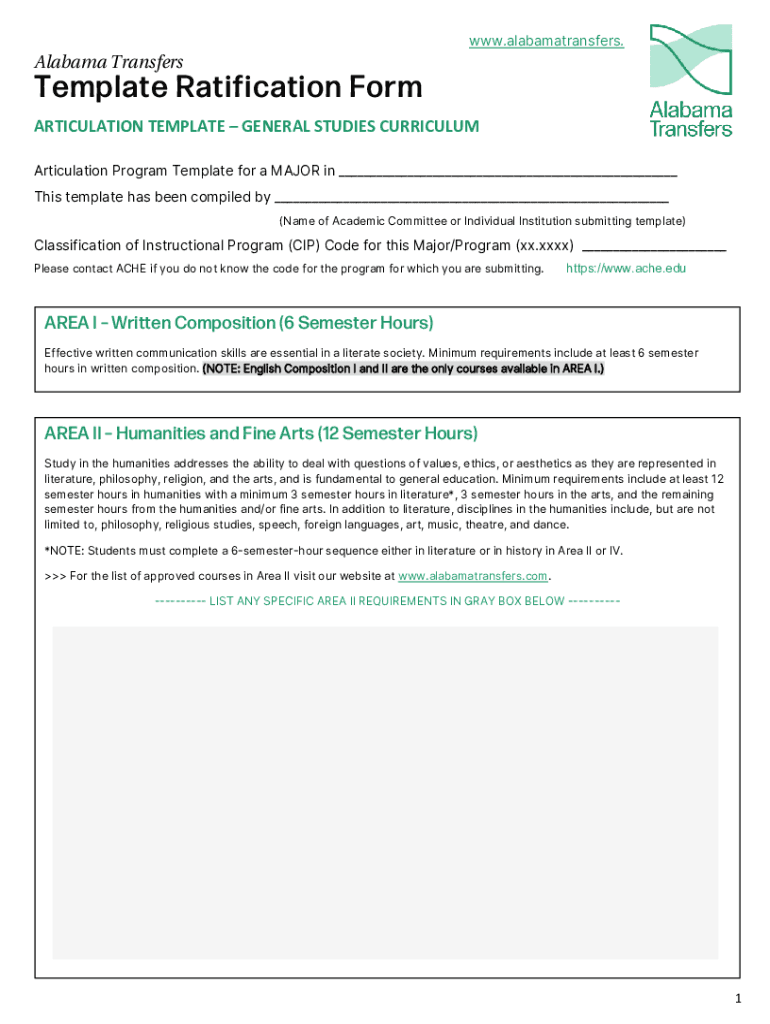 ARTICULATION TEMPLATE GENERAL STUDIES CURRICULUM