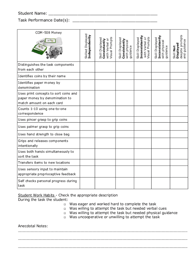 Student Name: ___Skill Not Displayed despite prompts and guidanceSkill Displayed Inconsistently with physical guidanceSkill Displayed Inconsistently with Verbal or Visual PromptsSkill Displayed Consistently